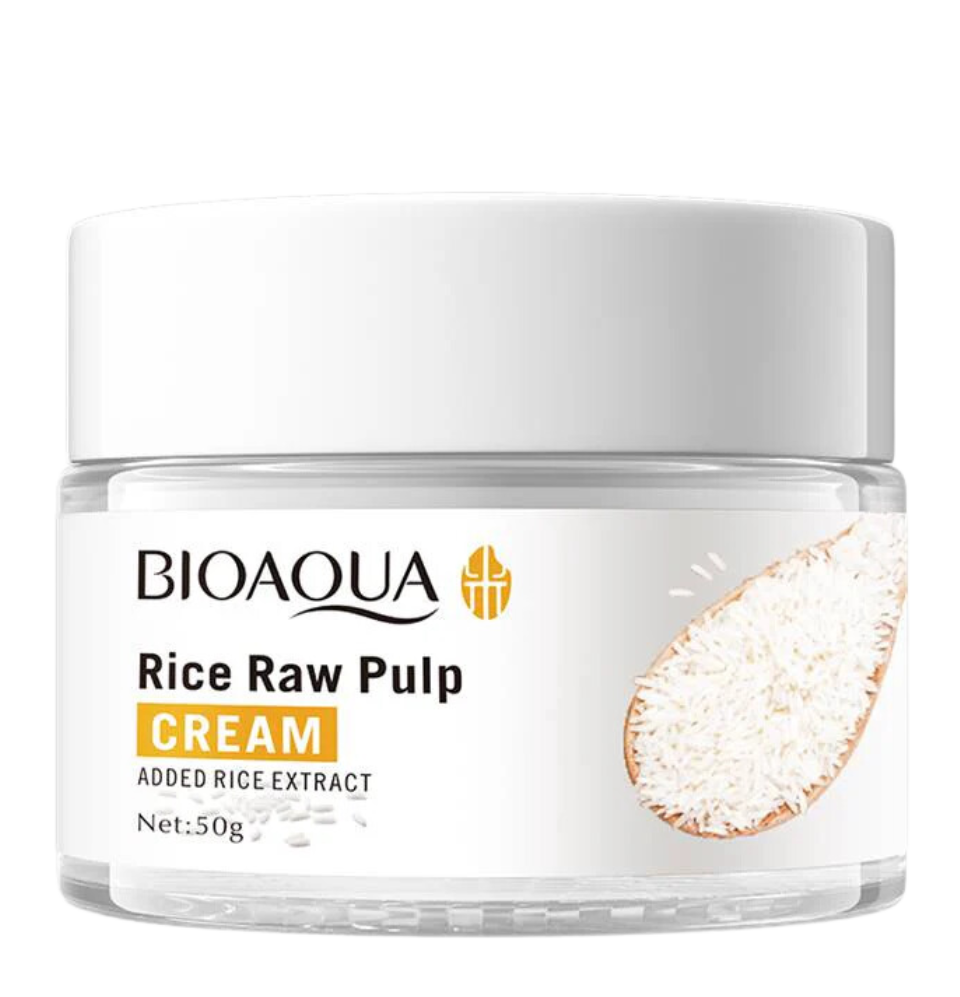 BIOAQUA Rice Raw Pulp Cream 50g is highly effective to hydrate and moisturize dry rough skin. It moisten, calm and soothe sensitive and skin without feeling greasy or oily.