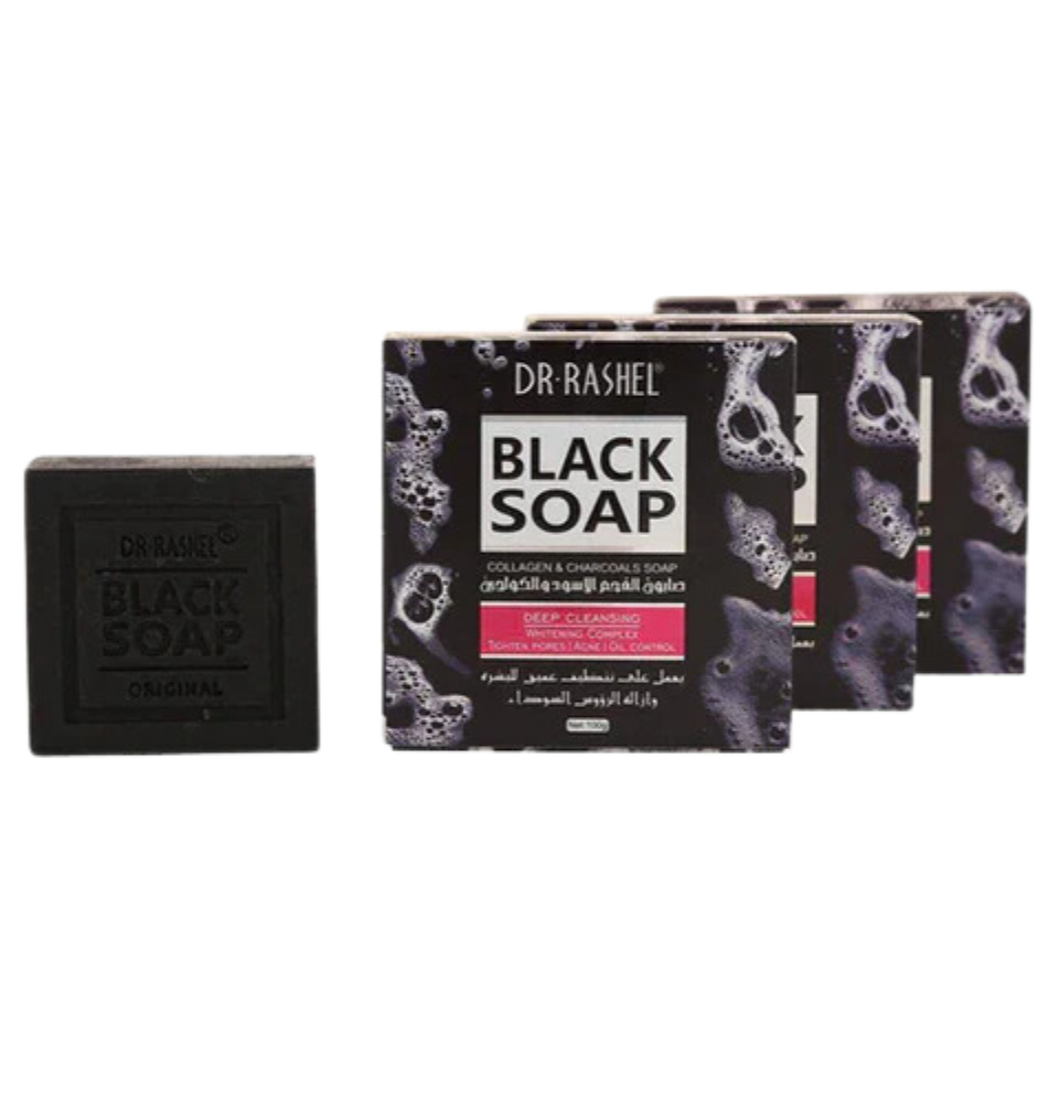 Dr.Rashel Collagen Charcoal Black Soap Deep Cleansing Facial Soap Tighten Pores, Acne & Oil Control - 100g