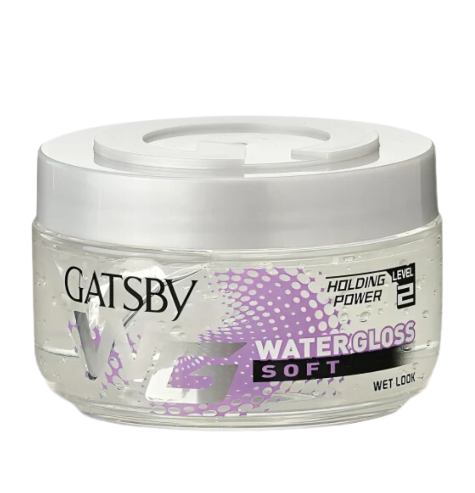 Gatsby's water hair gel in soft white, designed to help you achieve your preferred hairstyle, and it comes in a 150 g jar.