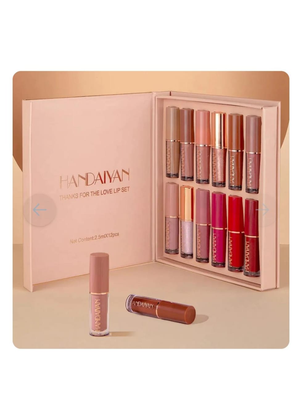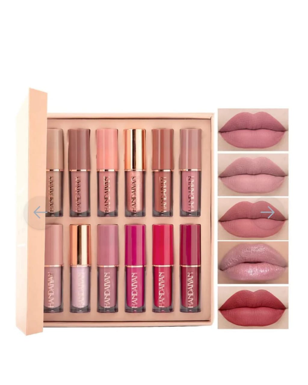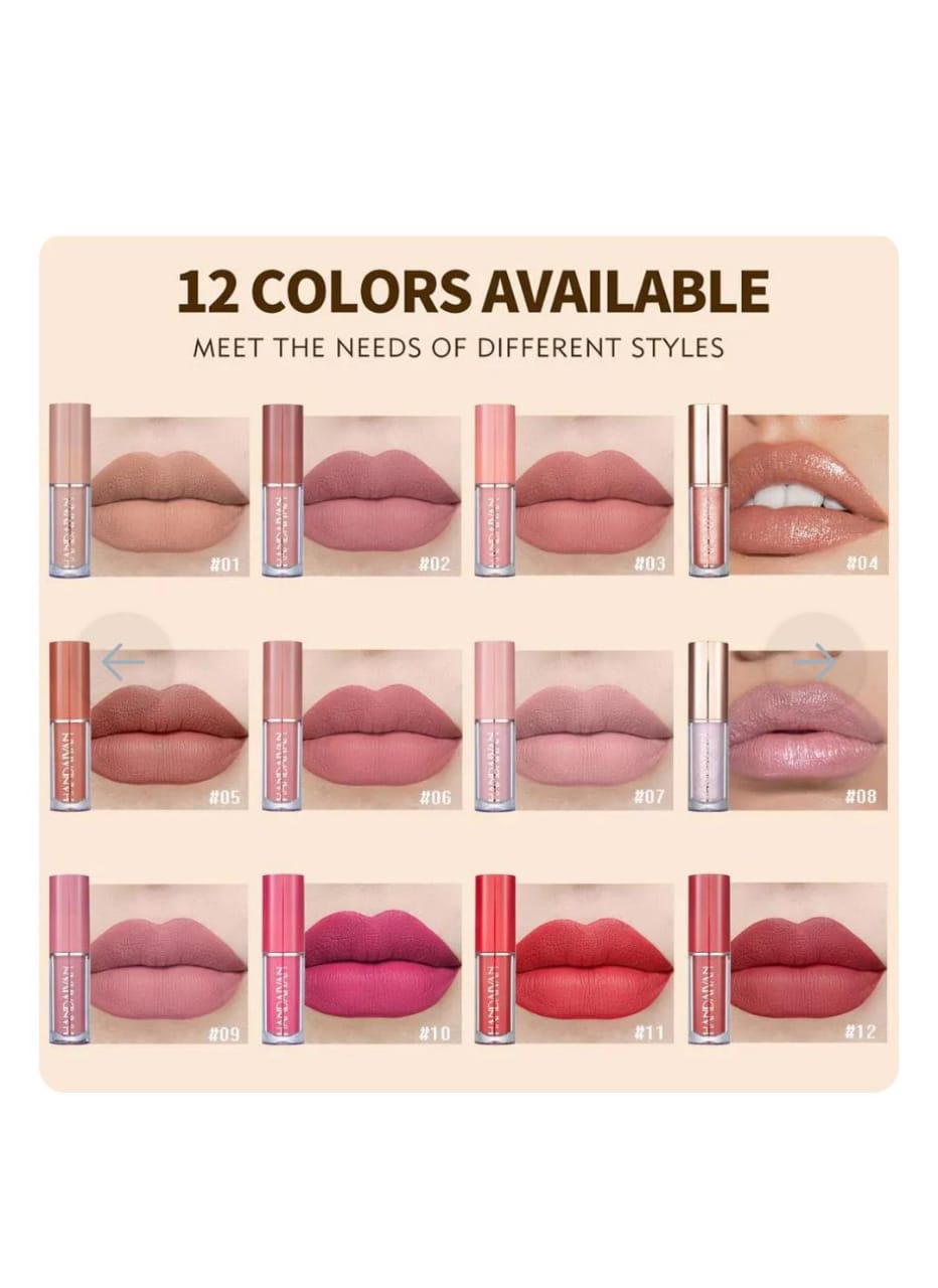 The Handaiyan 12-Piece Lip Gloss Set offers a versatile collection of lip colors, featuring a mix of matte and glossy finishes to suit any occasion. From subtle nudes to bold reds, this set provides a shade for every mood and style.