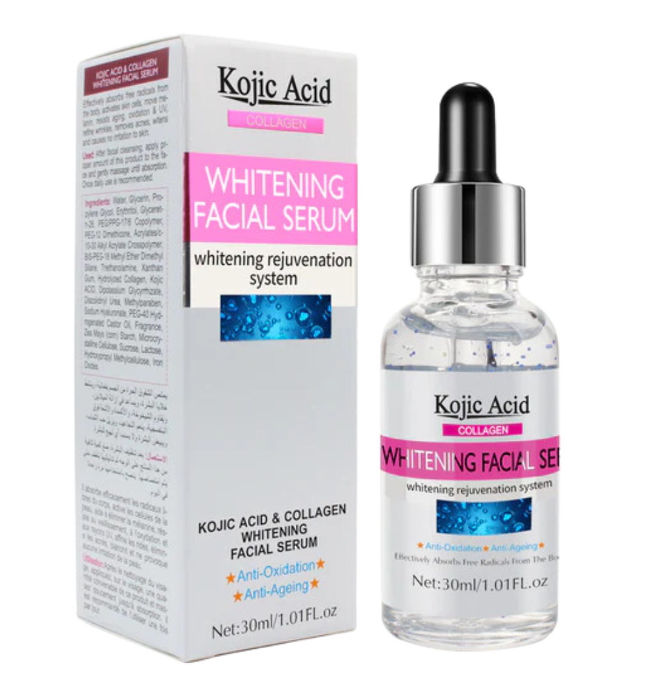 kojic Acid Whitening Serum Highly concentrated facial serum-visibly reduces the appearance of age spots. Improve skin tone, reduce pigmentation, and make skin healthier. The combination of ingredients makes it the best serum to eliminate age spots, sunburn, dark spots, scars, etc.!