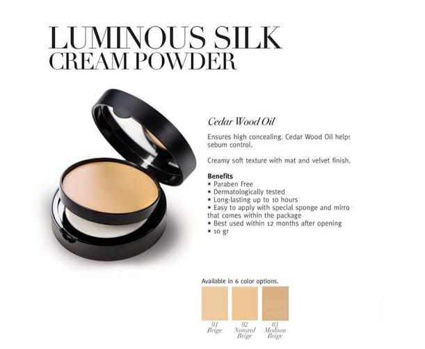 Our Note Luminous Silk Compact Powder, formulated with argan oil known for its moisturizing properties, has a soft and matte texture that helps even out skin tones, and reduces shine for a natural, flawless appearance. Includes a sponge and mirror for easy application.
